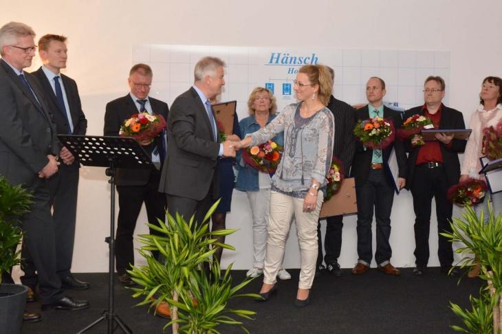 Sowohl Frau Evers (Prokuristin), Herr Myohl (Geschäftsführer) und Herr Wieczorek (Prokurist) sind heute Mitglieder des Führungsteams und können stolz auf ihre geleistete Arbeit und ihr Engagement sein und haben dadurch einen wesentlichen Beitrag zum Unternehmenserfolg beigetragen. Auch Herr Eberhard Strauch war jahrelanges Mitglied der Geschäftsführung und wurde für seine langjährige Treue und seine Leistungen für die Firma Hänsch geehrt. Gleichzeitig wurde er von Herrn Hans-Jürgen Hänsch mit dankenden Worten in den Ruhestand verabschiedet.